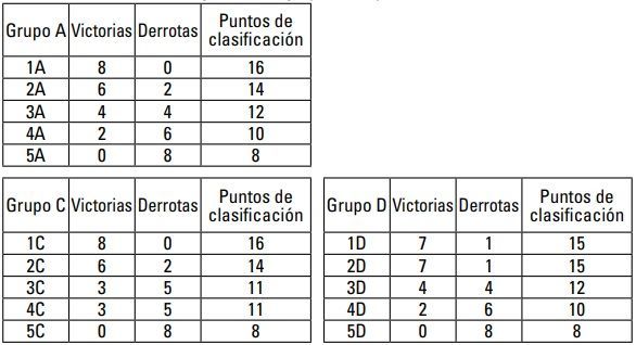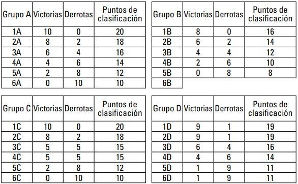 • Mejor registro de victorias y derrotas de todos los partidos jugados en su clasificación final de grupo corregida.