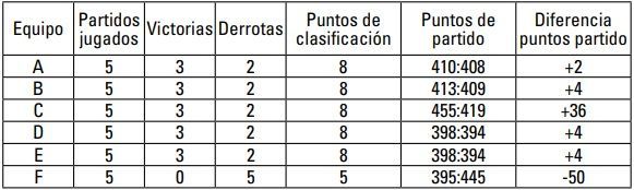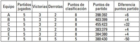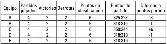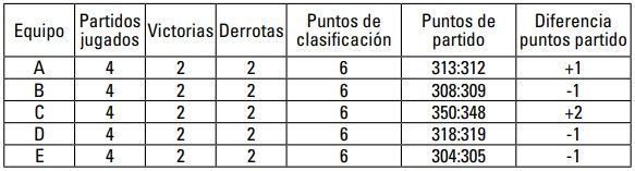 4º Equipo 2C Misma diferencia de puntos de partido que 2A, pero menor número de puntos de partido anotados.