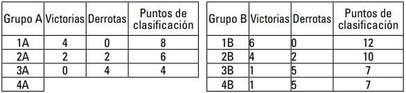 Ejemplo para los equipos situados en segundo lugar en las clasificaciones finales de grupo revisadas: