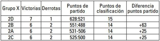 2º Equipo 2B Mayor diferencia de puntos de partido que los equipos 2A y 2C.